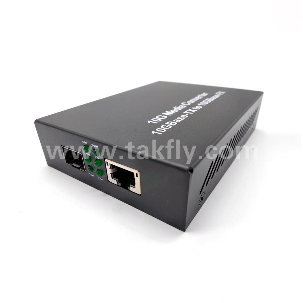 10G unmanaged media converter with SFP+ & RJ45 port. it is primarily designed for large, higher speed/bandwidth demanding workgroups that require expansion of the Ethernet network. it can extend the conventional converting 1/ 10G-BASE-T/ 10G-BASE-FX. it is high performance, cost-effective and flexible solution for a wide range of applications in the field of LAN campus networks.