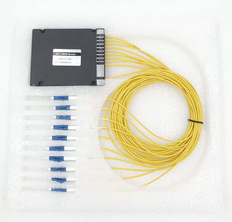 8+1CH 2.0mm LC/PC ABS Box Mux/Demux Optical CWDM Coarse Wavelength Division Multiplexer (CWDM) Utilizes Thin Film Coating Technology and Proprietary Design of Non-flux Metal Bonding Micro Optics Packaging.Features:Low insertion loss, low PDHigh IsolationCompact DesignGood channel-to-channel unifor......