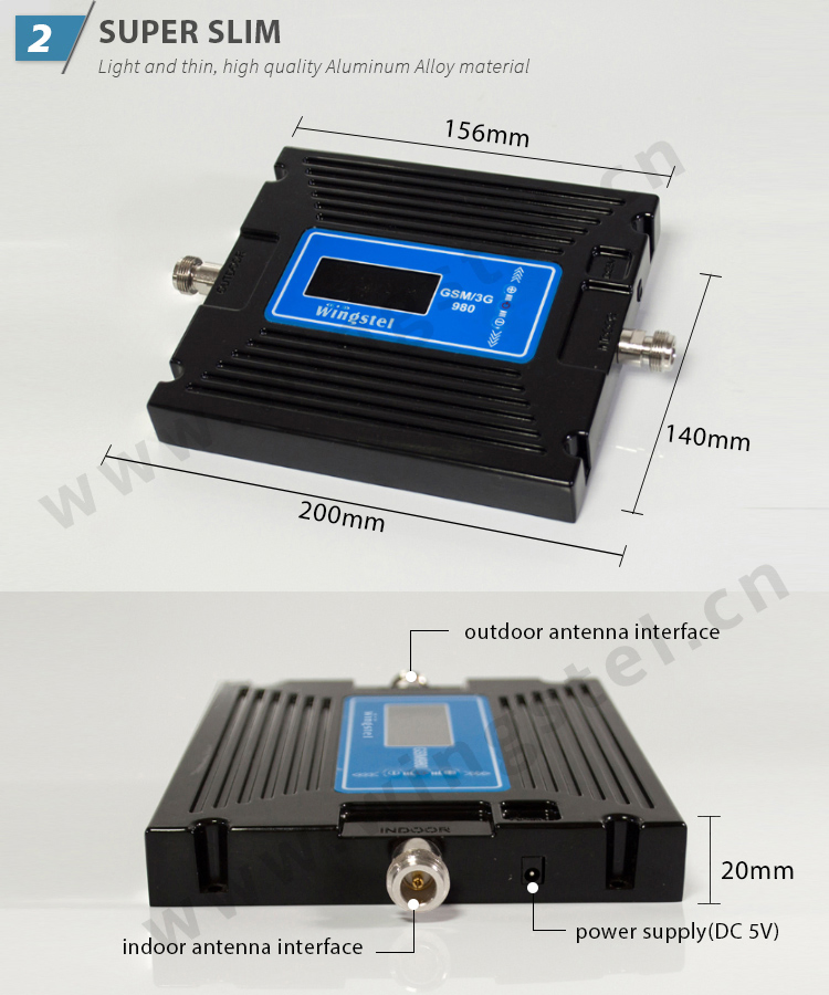 Gain Adjustable Dual Band 2G 3G GSM WCDMA 900MHz 2100MHz Mobile Signal Amplifier A mobile phone signal repeater provides the ultimate solution in any area where cellular communications can not work well due to leak of signals. The repeater device features easy installation & operation, build-in......