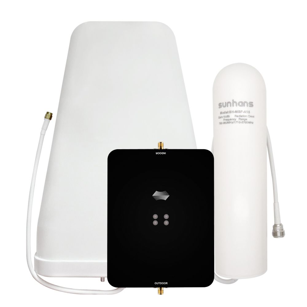 Sunhans 2G 3G 4G LTE Mobile Signal Booster 900MHz 1800MHz 2100MHz 2600MHz Cell Phone Signal Repeater with Indoor and Outdoor Antenna Signal Amplifier for HomeFeatures: 4 bands for American frequency, Max. gain 65dB;