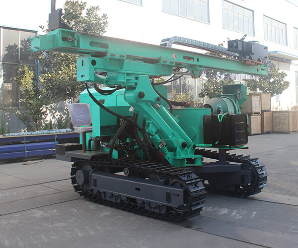 About HFPV-1A crawler hydraulic pile driver, its hydraulic parts adopt imported original parts, and machine has good stability, low failure rate, flexible and convenient operation, drilling boom has large swing angle, convenient for hole drilling in construction; the machine has compact structure, and mast has telescopic compensation function, during working the mast are supported on the ground, it has high borehole stability. HFPV-1A drilling rig has reliable performance, high efficiency, multifunctional applications. It is a powerful guarantee for customers to reduce costs and improve efficiency.