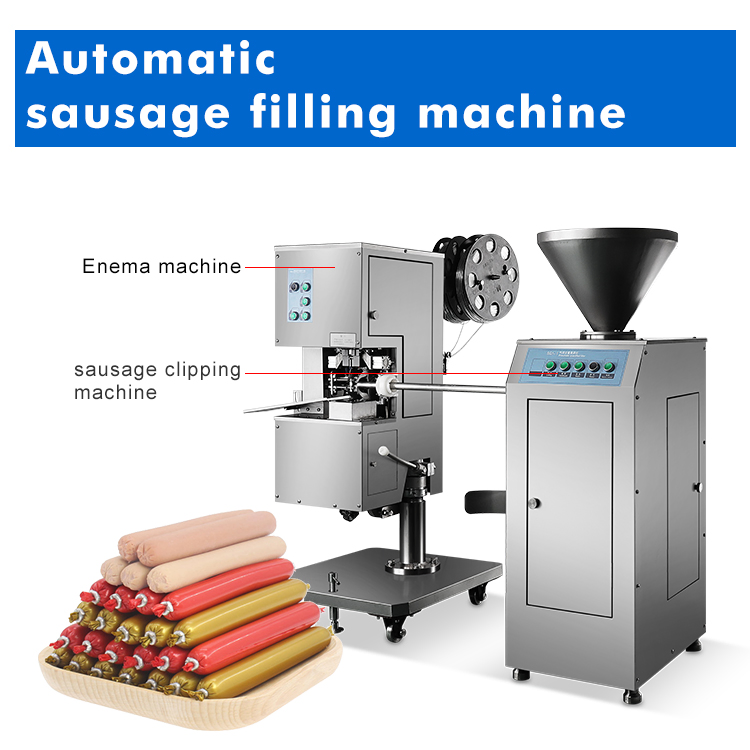 In the production of ham sausage, the enema machine and the punching card machine are a unit and need to work in combination. Usually the sausage stuffer needs a quantitative type. The commonly used are vacuum quantitative sausage stuffer and pneumatic quantitative sausage stuffer. The punching machine is also divided into aluminum wire punching machine and Great Wall punching machine. The combination of pneumatic quantitative sausage stuffing machine and aluminum wire double card punching machine is widely used because of its affordable price.