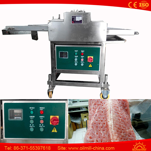 NHJ600/400/300 tender machine is a mechanical method through two sets of multi-blade knife to cut the meat, destruction of its tendons and connective tissue, so that salt easily penetrate into the meat of the fiber tissue, Time, to improve the structure of the meat, so that the meat becomes tender, to achieve the purpose of tenderness.