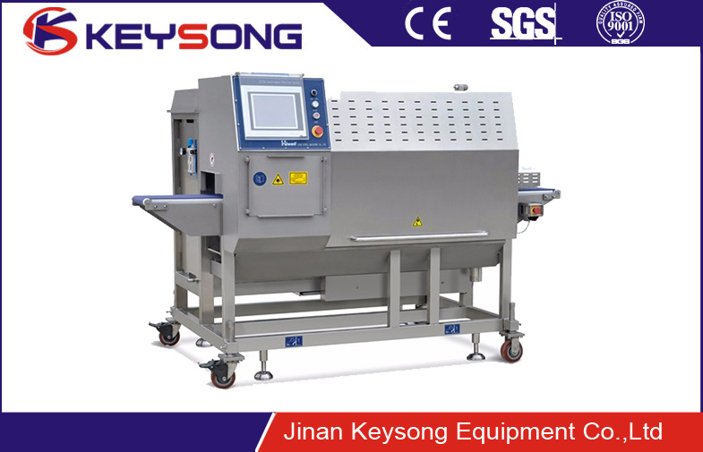Intelligent Fresh Fish Portion Cutter CUT28-IVThe two-dimensional measurement of irregular meat is used,analytical calculation by software, which can get the product cutting length and do multiple degrees cutting. Then it can make sure each piece with same weight after cutting or other required weight. It can be applied with fresh raw meat (Thaw), meat thickness ≤50mm, mainly apply with fish and poultry meat cutting, such as fish fillet, fish steak, chicken meat, chicken steak etc.Application:1.Cutting required euqal weight product.2.Remove the tail and head and with equal weight cutting.3.Remove the tail and head which does not meet the size requirements, cutting the meat according to the specified width,size and recipe weight.Features:1.The two-dimensional measurement of irregular meat is used,analytical calculation by software to make sure product cutting weight.2.High precision cutting, Weight error ≤2%.3.Cutting parameters can be adjusted easily, directly operated by touch screen.4.Multiple cutting angles 45 or 90 degree.5.It can be applied with different blades depend on different meat;Apply Europe Standard blade for process.6.Adopting imported module type belt, Long service life.7.Adopting SIEMENS electrical parts, with CE approved safety protection device.8.Adopting 304 stainless steel and engineering-plastics, Easy to clean. HACCP standard easy operation, low maintenance cost.Technical Parameters Model | CUT28-IV |