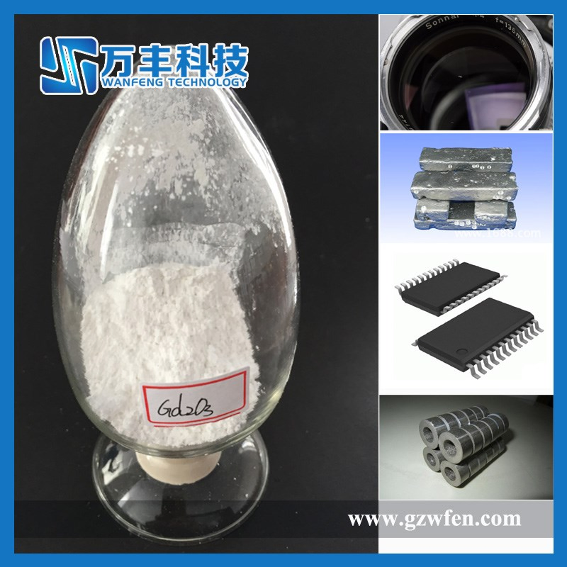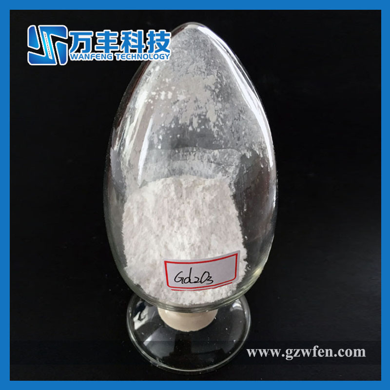 Application: Gadolinium Oxide is mainly used in manufacturing of metal gadolinium, Gd-Fe alloy, memory storage single substrate, optical glass, solid state magnetic refrigerating medium, inhibitor, Sm-Co magnet additives, X-ray increased sense of screen, magnetic refrigerant, etc.