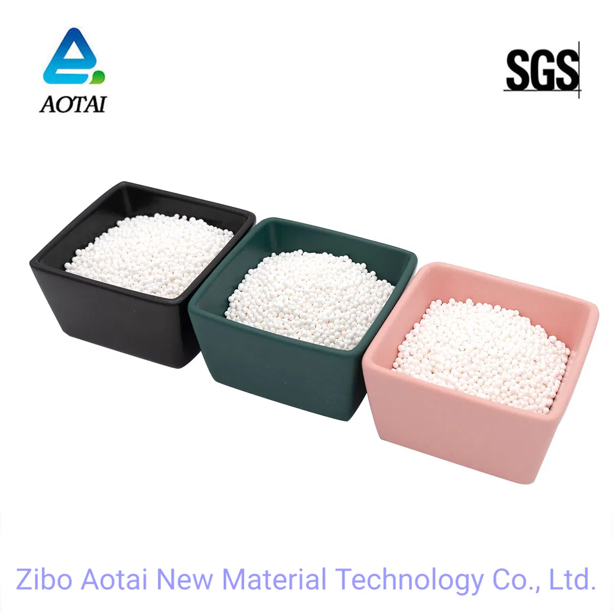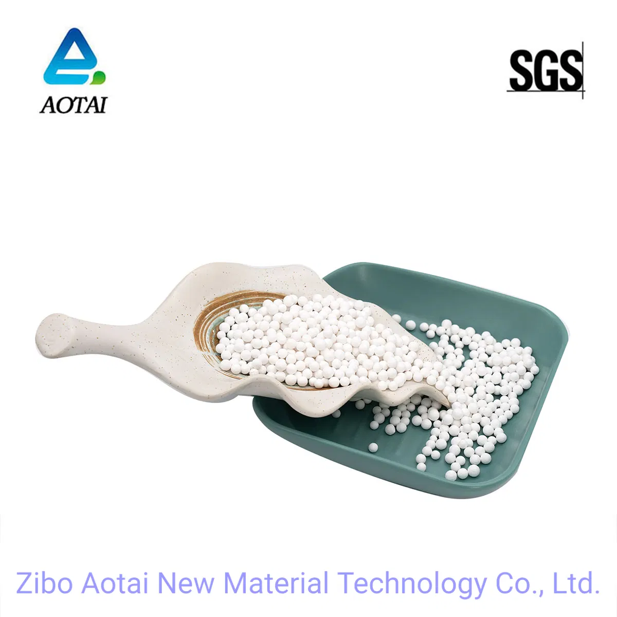 Activated alumina is manufactured from aluminium hydroxide by dehydroxylating it in a way that produces a highly porous material; this material can have a surface area significantly over 200 m²/g. The compound is used as a desiccant (to keep things dry by absorbing water from the air)and a filter of fluoride, arsenic and selenium in drinking water. It is made of aluminium oxide (alumina, Al2O3). It has a very high surface-area-to-weight ratio, due to the many "tunnel like" pores that it has. Activated alumina in its phase composition can be represented only by metastable forms (gamma-Al2O3 etc.).