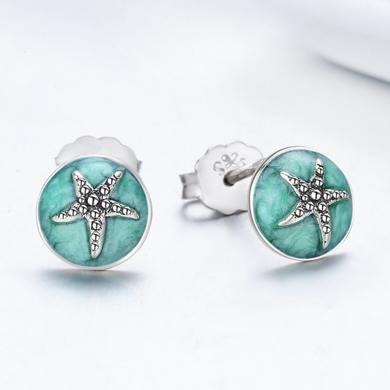 Creative Starfish Enamel S925 Silver Stud Earrings | |