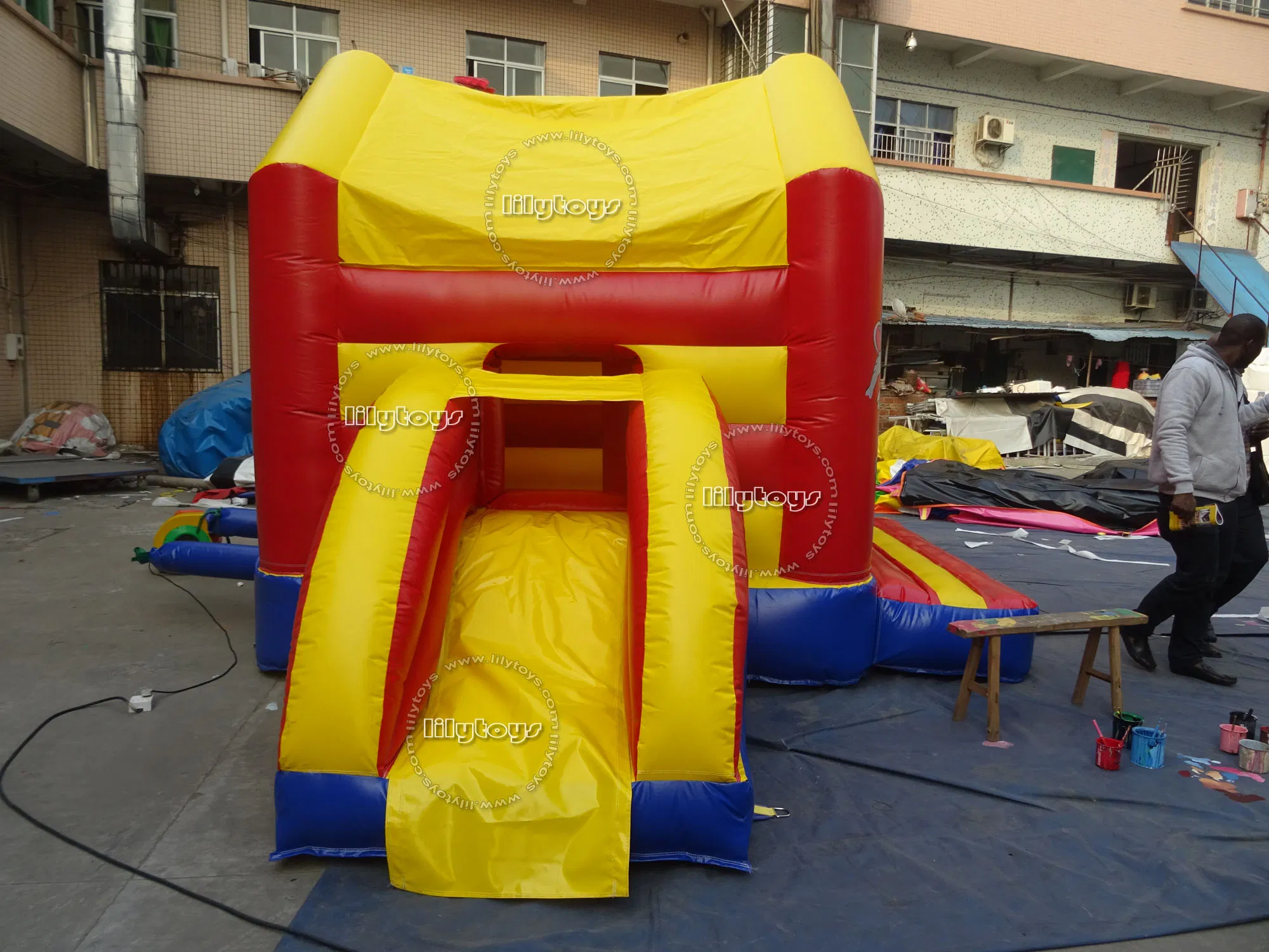 Come with | 1. 3-5years warranty 2. blower(if customer want to buy the blower) 3. repair kits 4. Safe rule 5. Ramp 6. Banner with your phone No/company name 7. Spikes 8. Card holder(if you need let me knows) 9. Emergency exit for faster deflation process ramp |