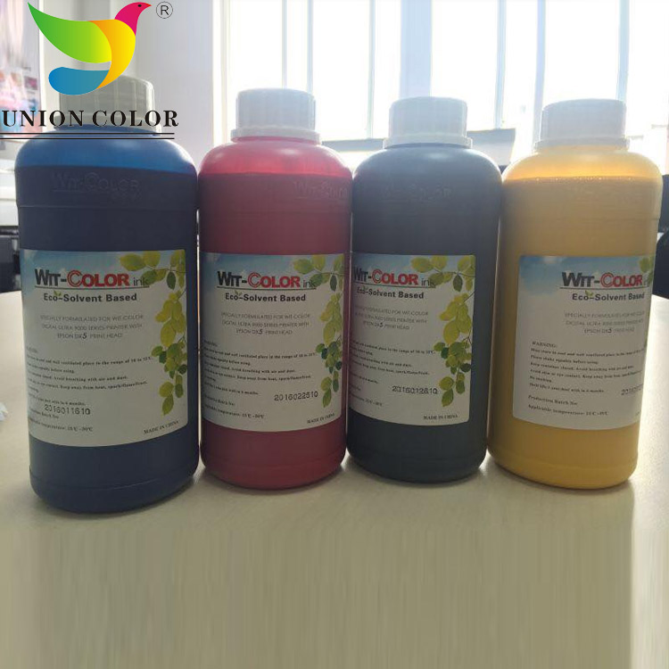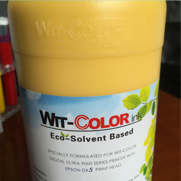 Prodct Describtionwit-color dx5/dx7 eco solvent ink Original wit-color dx5/dx7 eco solvent ink, With raw materials imported from Ciba and Claent at 7-8 level light fastness, ground to nano level and double filtered to less than 0.45 picometer ,which provides over 1 year outdoor durability. A......