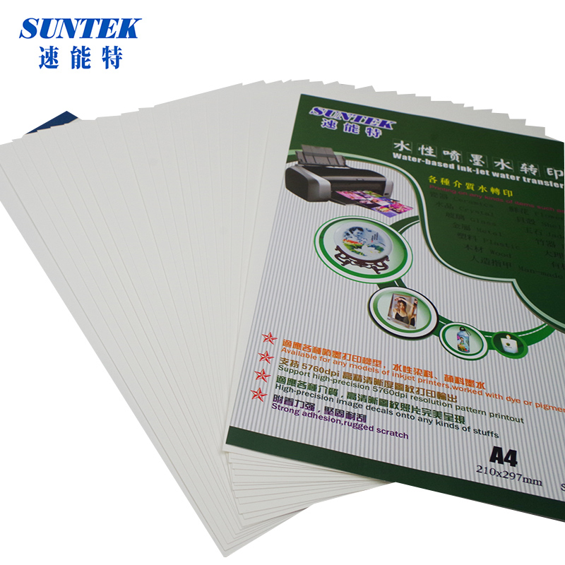 | Inkjet Water Transfer Decal Paper (white) | STC-T05 | A4 | 203 GSM | 0.035 mm | 0.245 mm | Printing on dark surface |