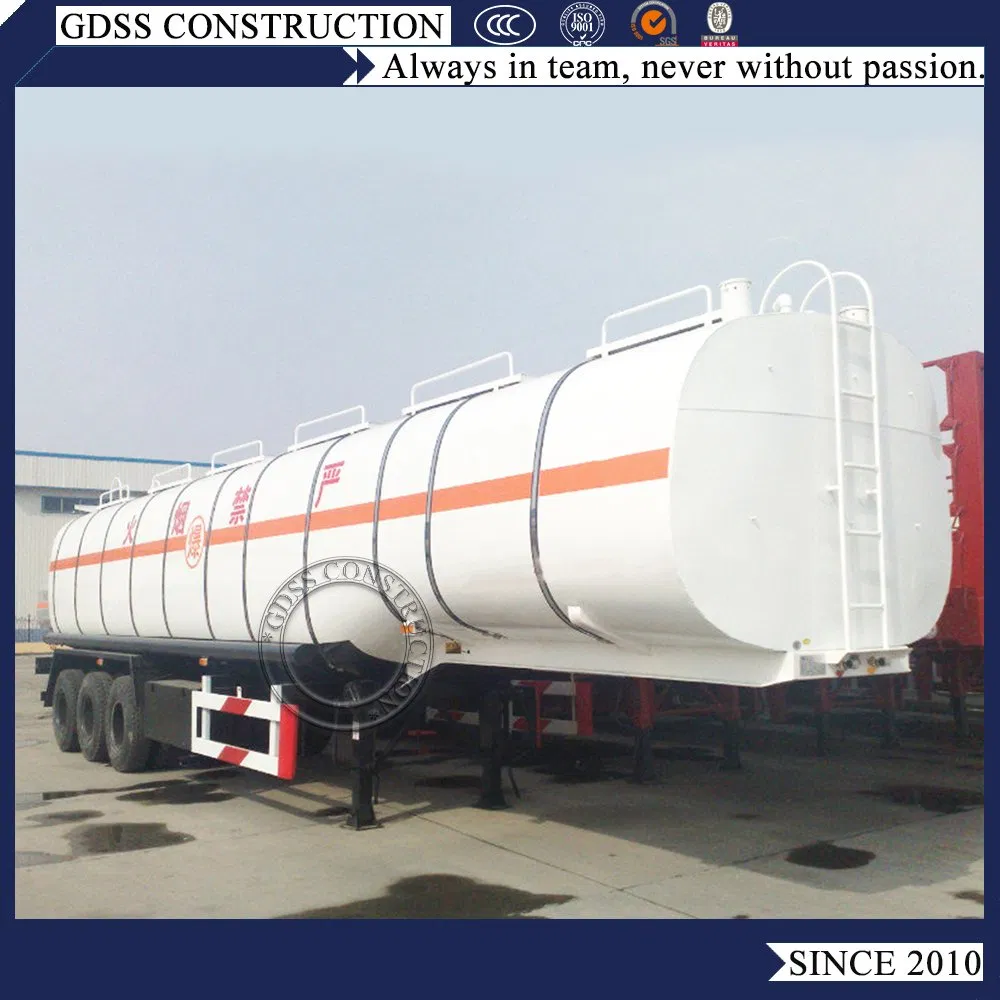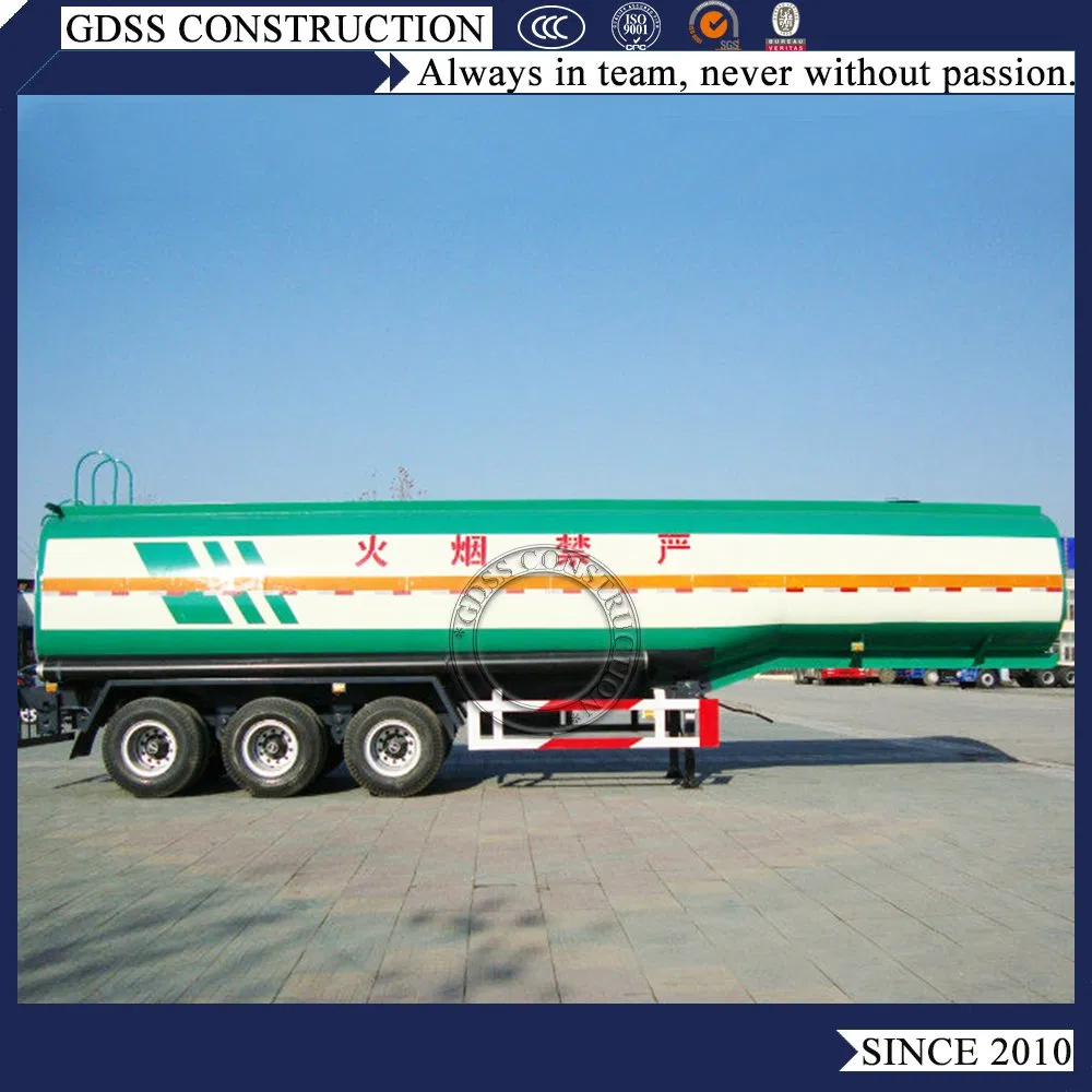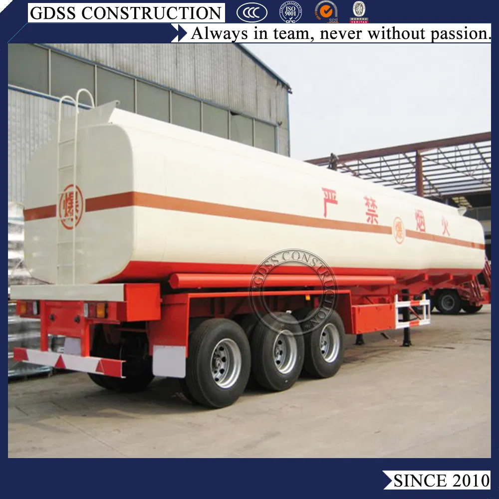 Basic structure Tank body: Material of carbon steel Q235B, tank body thickness 5mm;End thickness of 6mm. Oval or round shape tank body. Two compartments with two manholes 500mm in dimension. Two sets of ball valves. Two sets of discharge valves Chassis: Main beam height of 500mm, material of high tensile steel Q345B, welded by automatic submerged-arc processes;Constructed of original main beams electrically welded with corresponding extra strong cross members, material of Q345B. Running system: 3 sets of 13T brand new axles. Mechanical steel tri-axle suspension system installed on the trailer. Tire size 12R22.5, 12 pcs per trailer. Wheel rim sized 9.00*22.5, 12 pcs per trailer. Dual line air brake system with T30/30 type double brake chambers on each axle. 12V Electrical wiring & Lighting systems, LED lights, including side, rear, turning. Others: One set of standard tools in toolbox. Valves designed in valve box. Two sets of fire extinguishers. One piece of discharge pipe enclosed with the tank. |
