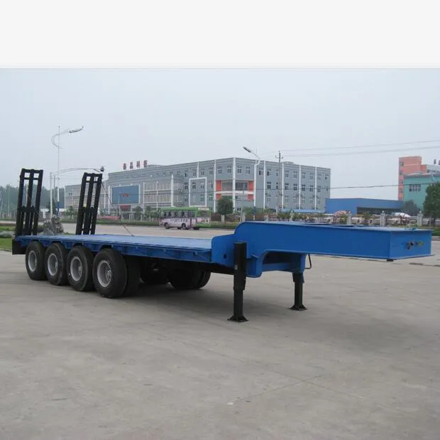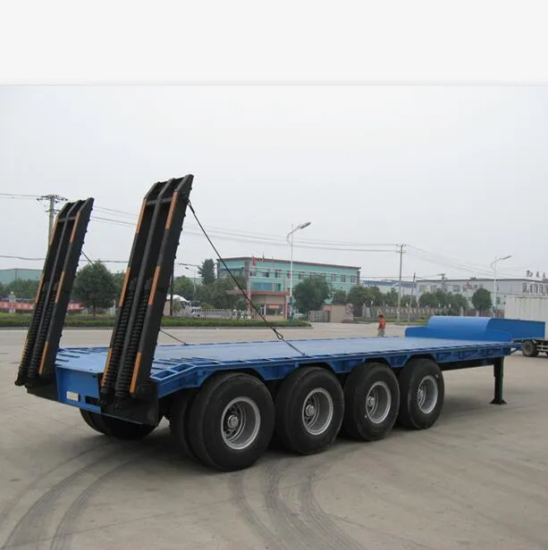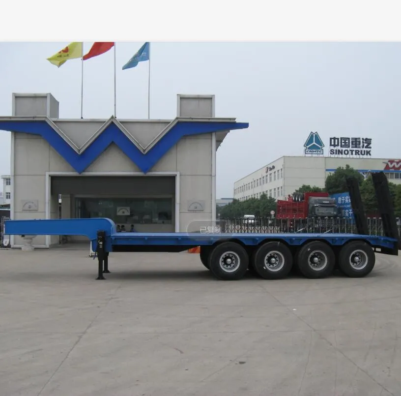 4 axle lowboylowbed semi truck trailer Trailer Features :1. SINOTRUK brand and CCC/ISO9001 certificate approved;2. BPW/FUWA/HJ/AQ brand 12/13/14/15/16 ton axles optional;3. Specialized mechanical suspension for low bed trailer reduces deck height;4, 2x250 mm movable plates on each more practical;5......