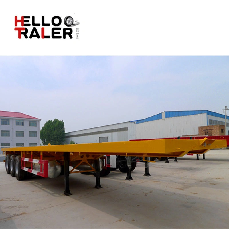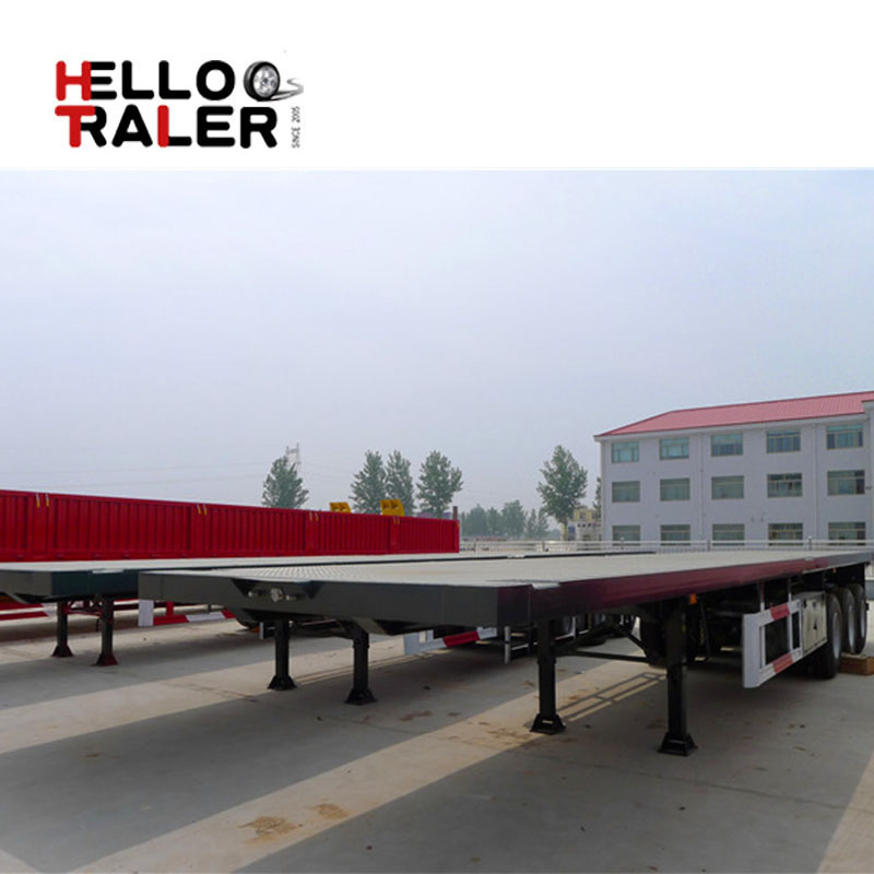 40 ft Tri-axle flatbed container truck semi trailer 1. Transport 20ft, 40 ft, or 45ft container 2. 12 container lock to 3. Optional water tank, fuel tank, etc. Technical parameters Main parametersOverall dimensions (LxWxH)12500x2500x1550 mmLoading capacity40 tonMain beamHeight of the beam......