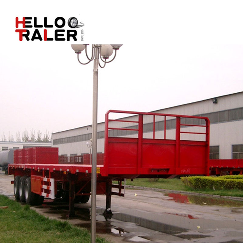 Cimc Huajun 3 Axle Stake Semi Trailer with Flat Wall