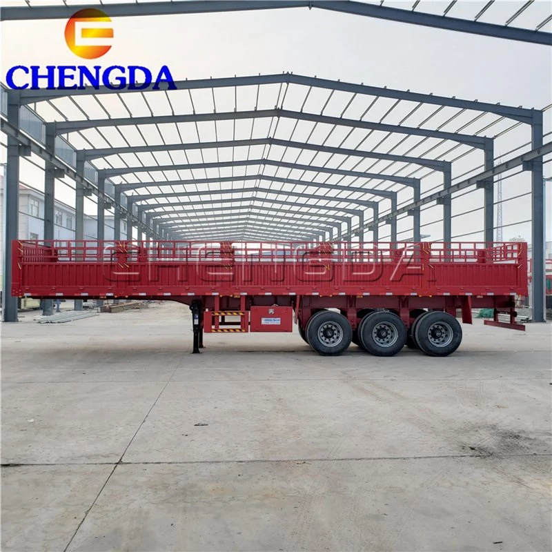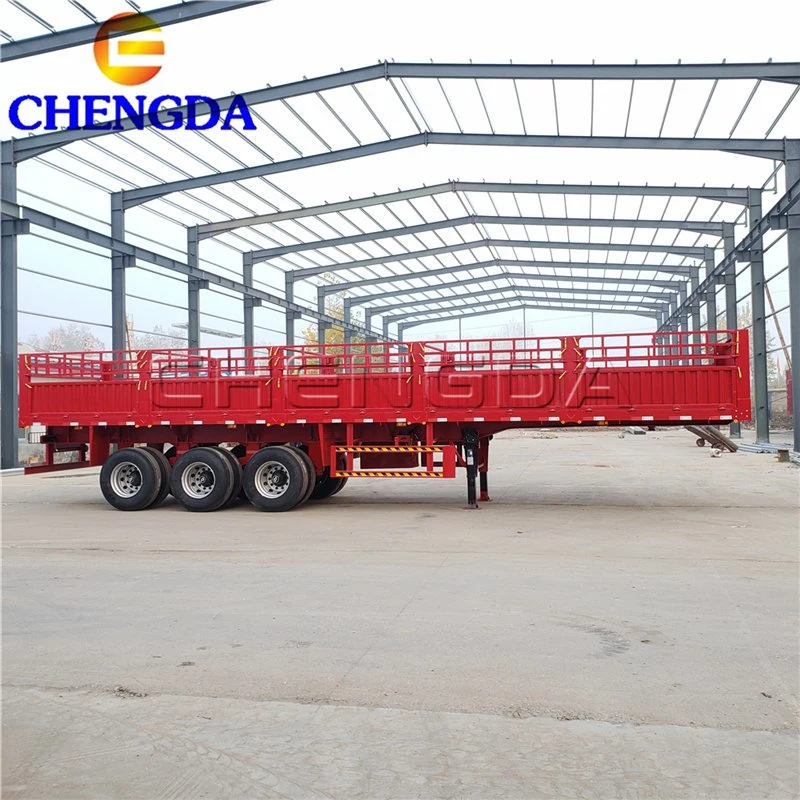 Cimc Huajun 3 Axle Stake Semi Trailer with Flat Wall