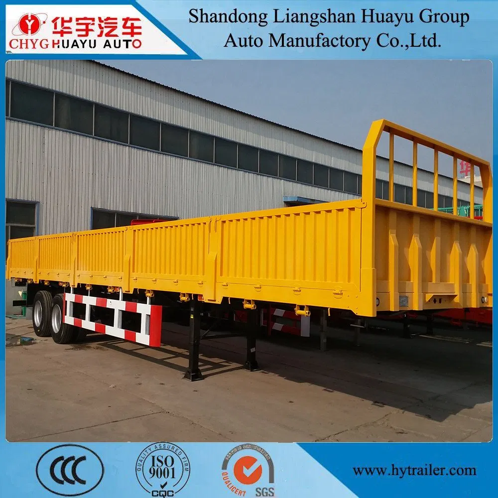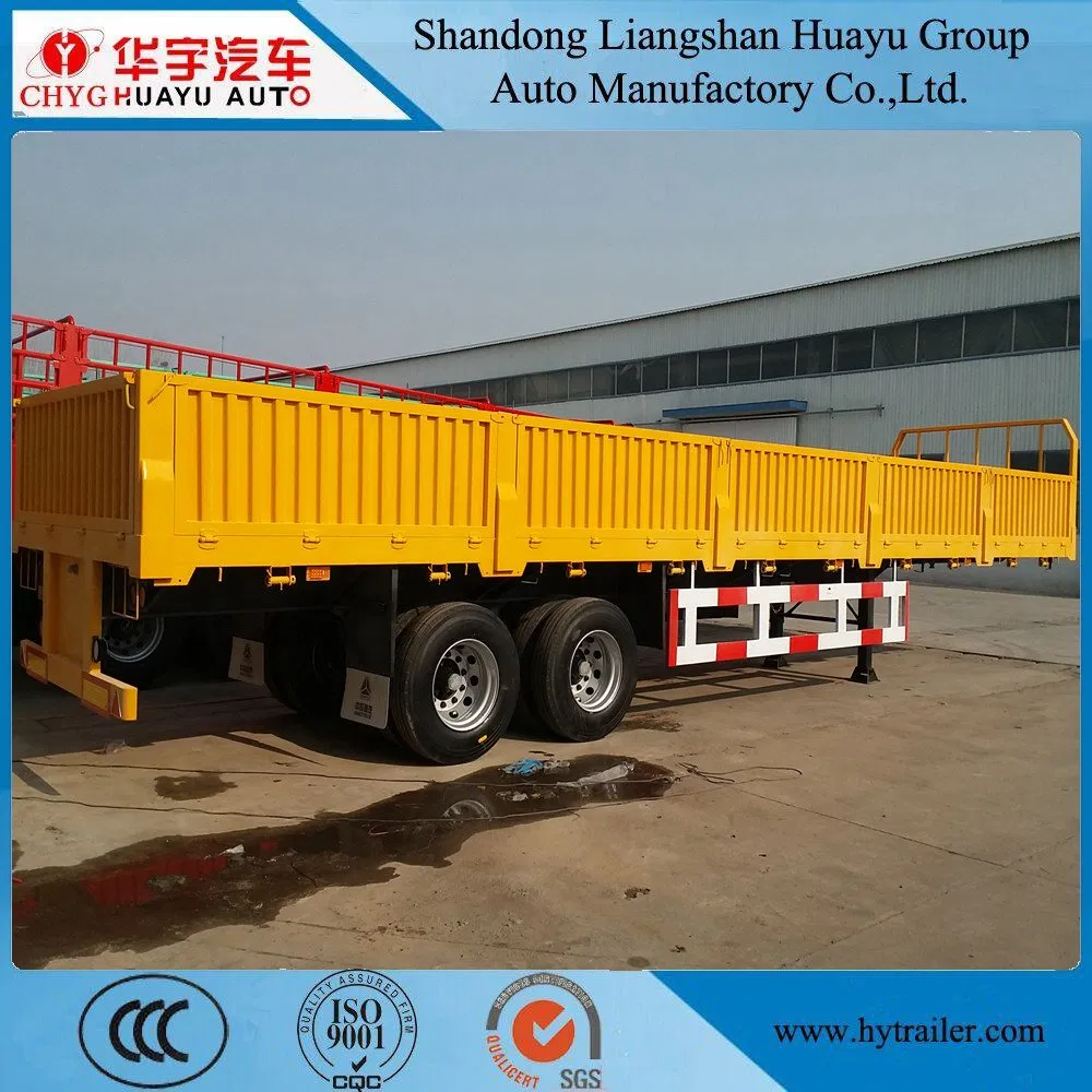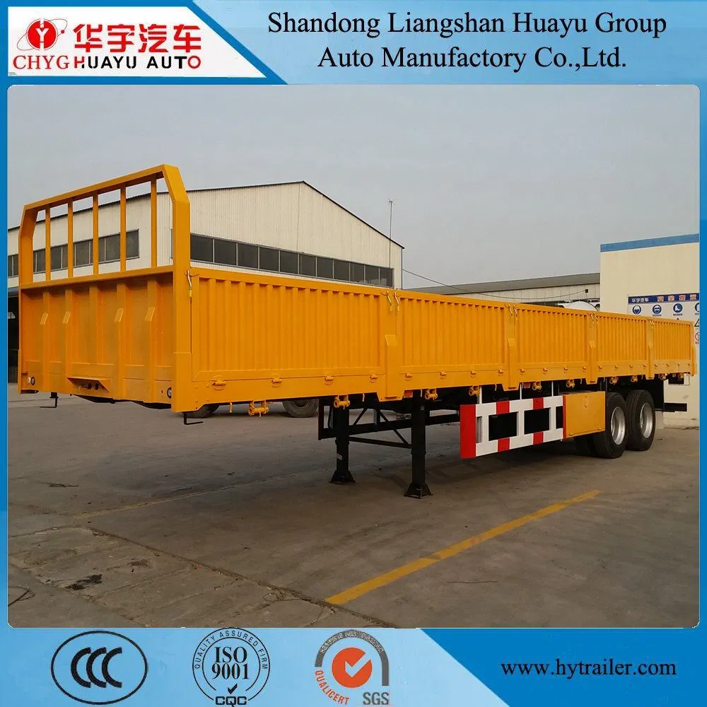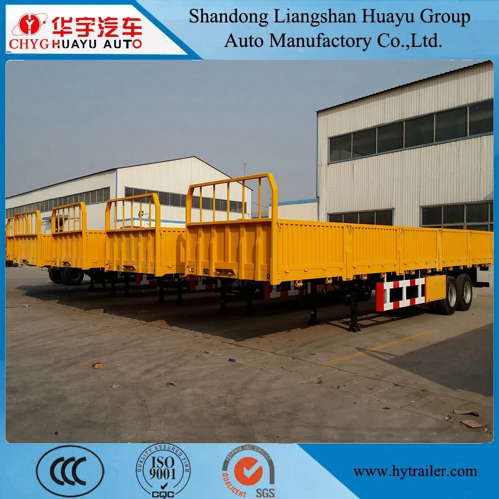 Cimc Huajun 3 Axle Stake Semi Trailer with Flat Wall