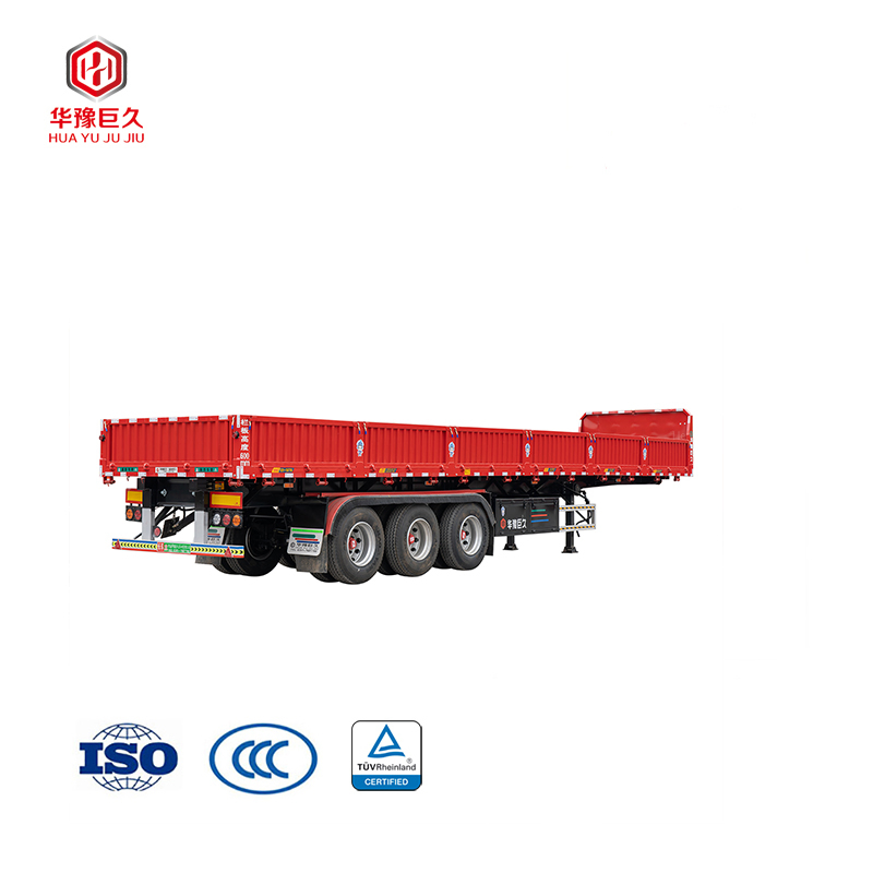 Cimc Huajun 3 Axle Stake Semi Trailer with Flat Wall
