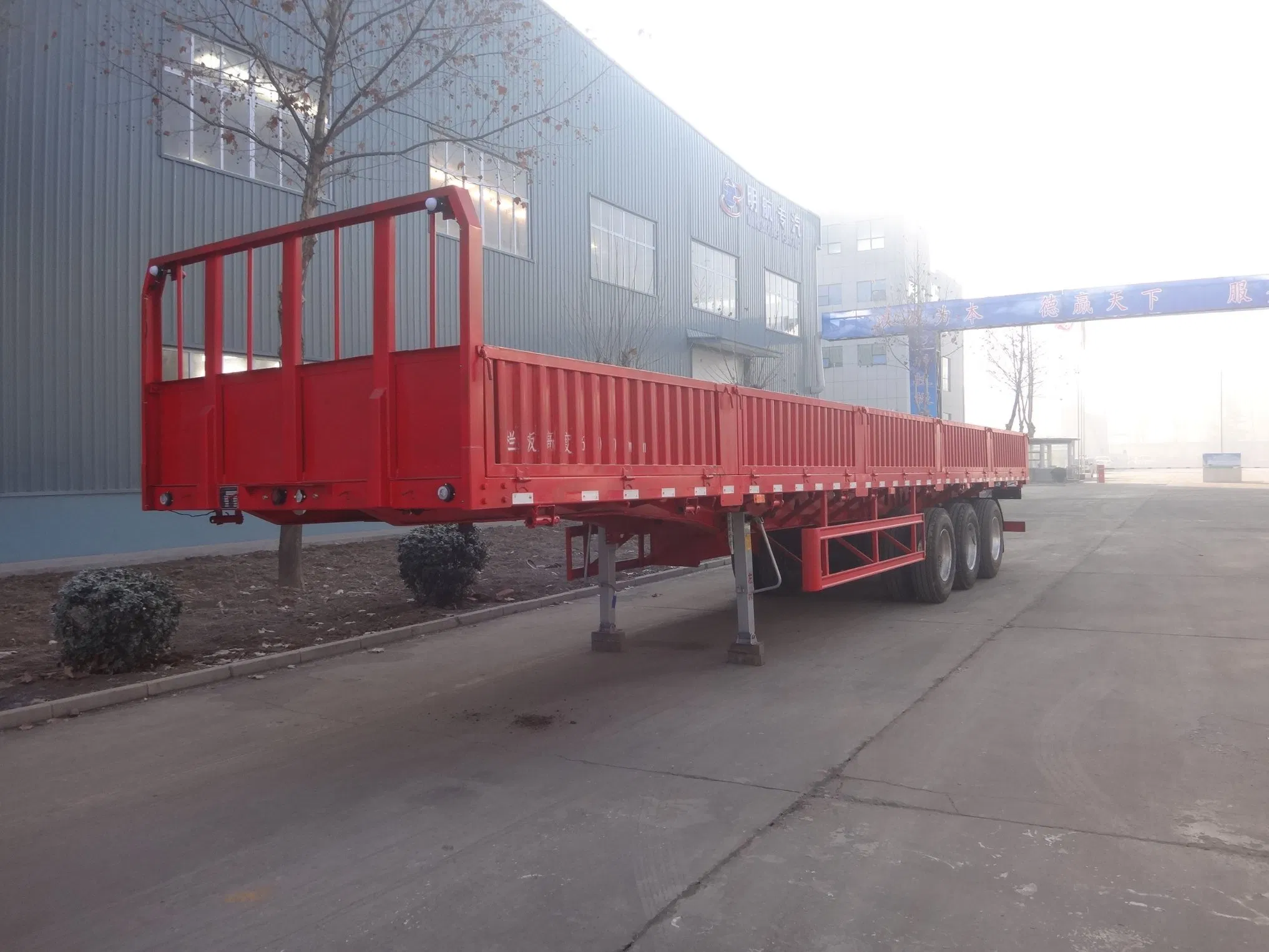 Cimc Huajun 3 Axle Stake Semi Trailer with Flat Wall