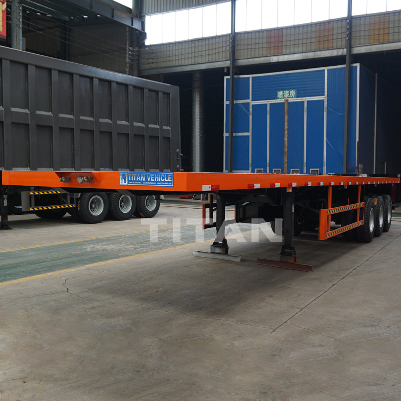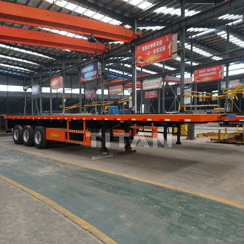 TITAN 40ft 3 Axle Container Flatbed Semi Trailer, offer the container trailers to maximize the payload. TITAN flatbed container trailer adopt advanced design concept. After fully understanding and analysing the transportation environment in different countries. Also the length of the trailers can be customized, like 45ft, 48ft, or 53ft container transportation trailers.