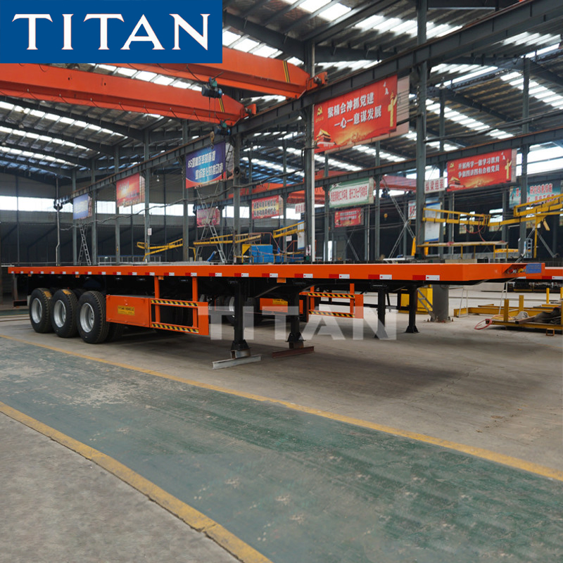 tridem axle 40 ft flatbed container 40t 3 axle semi trailerProduct DescriptionTITAN 40ft 3 Axle Container Flatbed Semi Trailer, offer the container trailers to maximize the payload. TITAN flatbed container trailer adopt advanced design concept. After fully understanding and analysing the transportat......