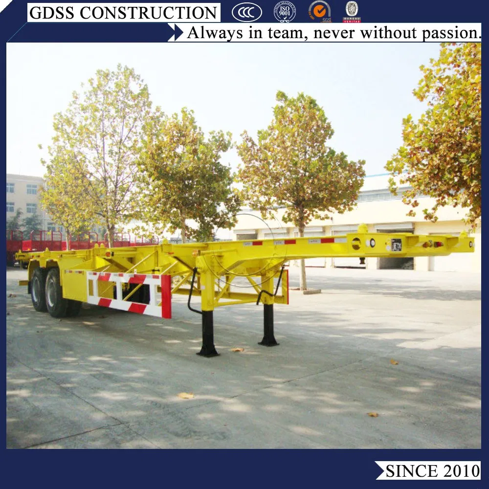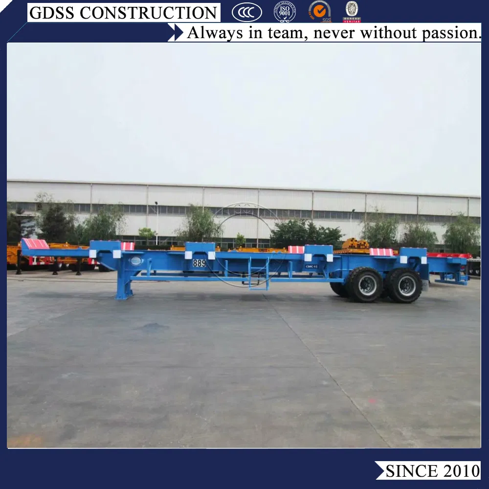 1. SpecificationsModelGC9250TJZGDimensionOverall length: 12200mmOverall width: 2500 mmOverall height: 1500 mmLoading capacity: a 40ft container or 2x20ft containers.King pin size: 2''.ChassisMain beam: material of Q345B, welded by automatic submerged-arc processes. Constructed of original ma......