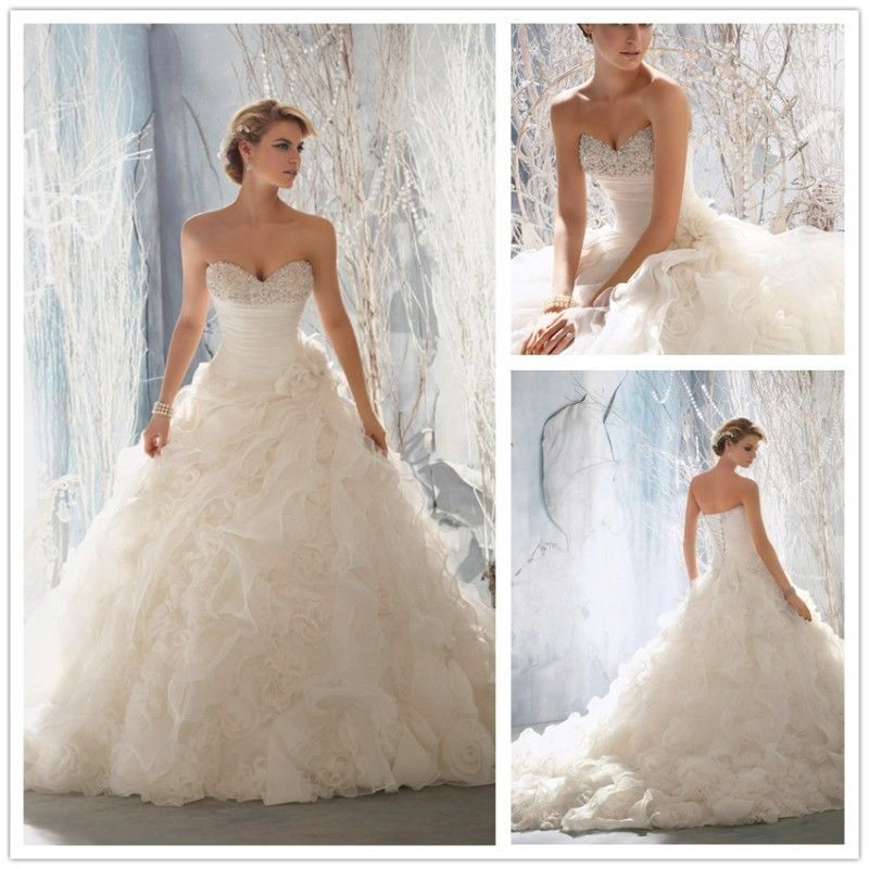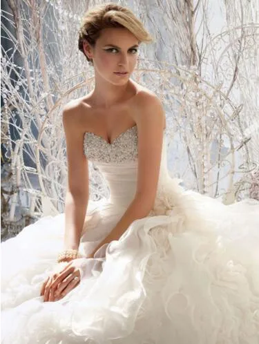 Strapless Ball Gowns Beaded Crystal Satin Sweetheart Wedding Bridal Dresses Z2072
