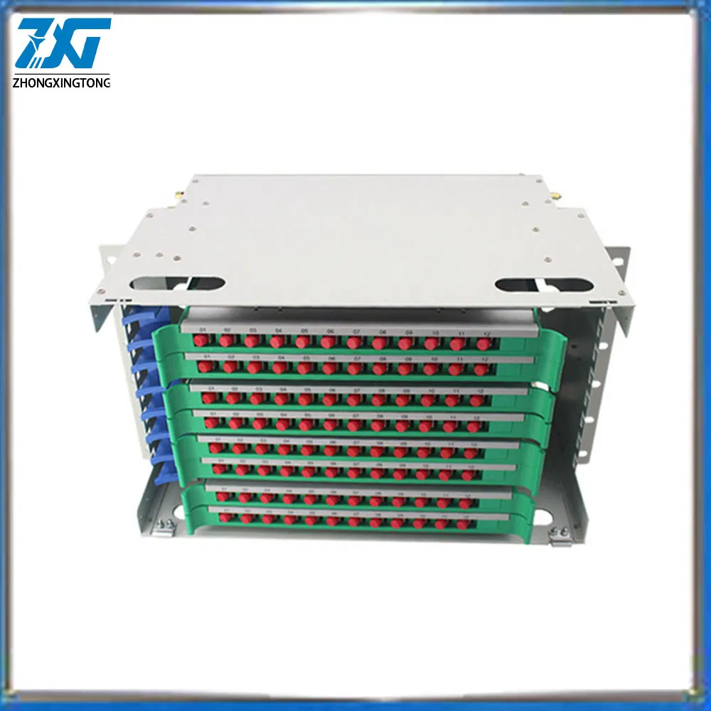 144 Cores Rack Mounted Fiber Optic ODF Patch Panel, ODF Optical Distribution BoxProduct descriptionAn optical distribution frame (ODF) is a frame used to provide cable interconnections between communication facilities, which can integrate fiber splicing, fiber termination, fiber optic adapters & connectors and cable connections together in a single unit. It can also work as a protective device to protect fiber optic connections from damage.