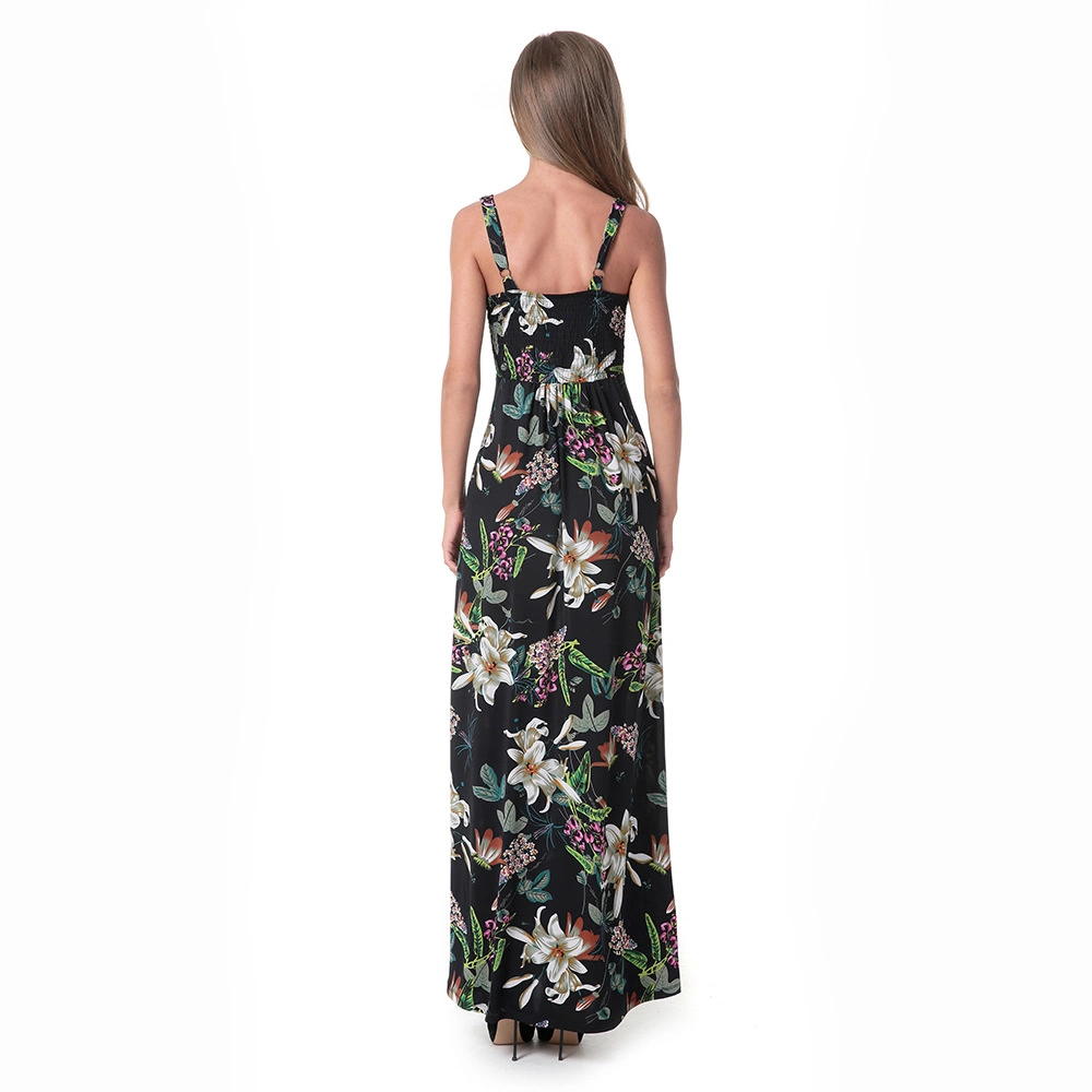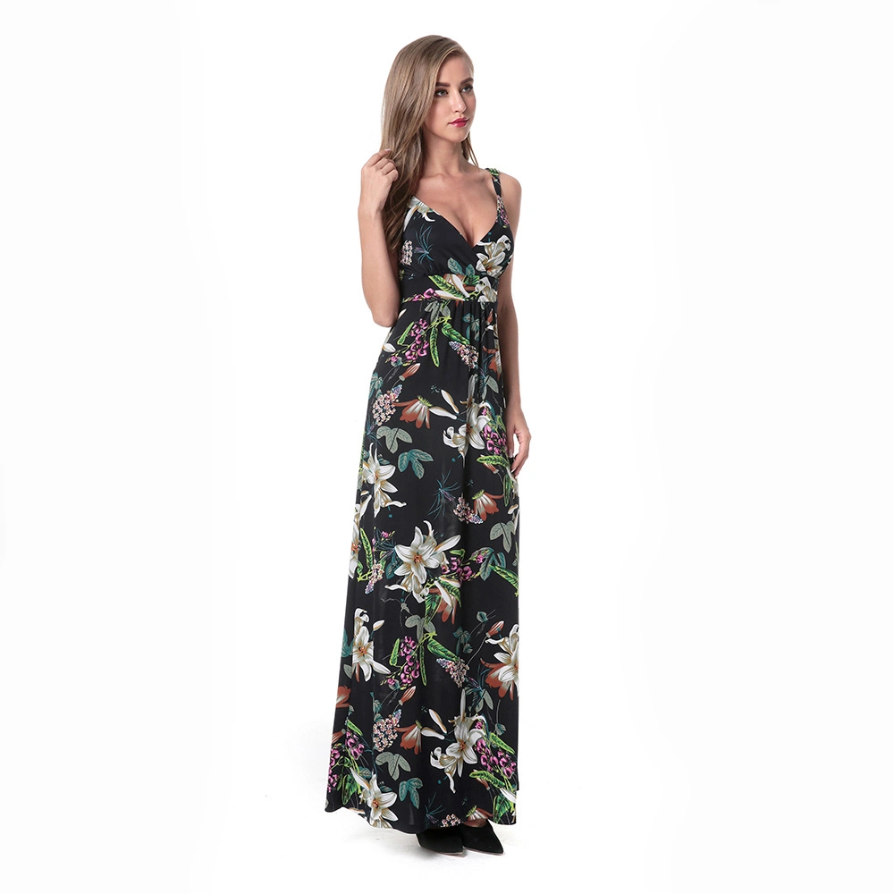 Women Maxi Dress Sexy V Neck Sleeveless Floral Print Sundress