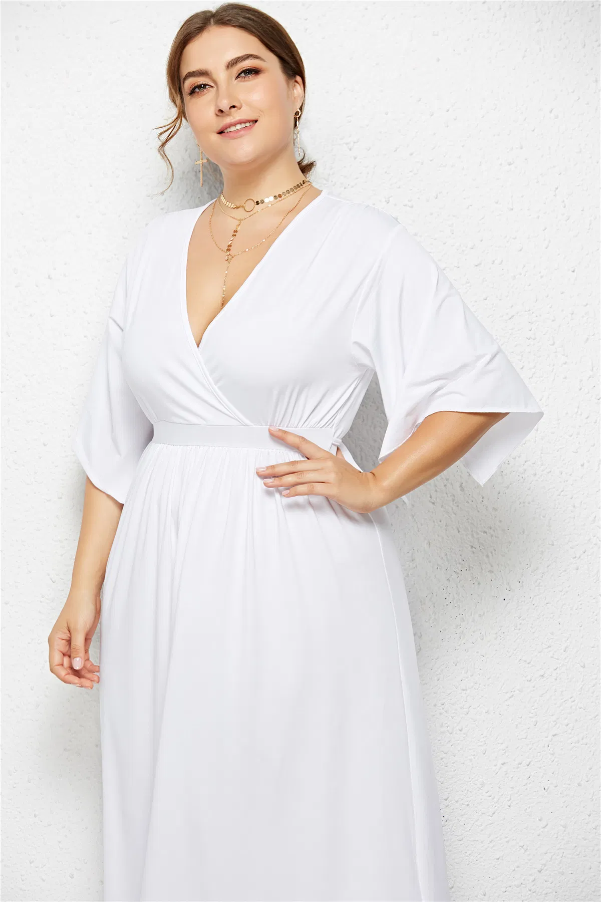 Item name | Women Plus size dress pure color V-neck dress middle sleeve muslim dress in stock ropa mujer |